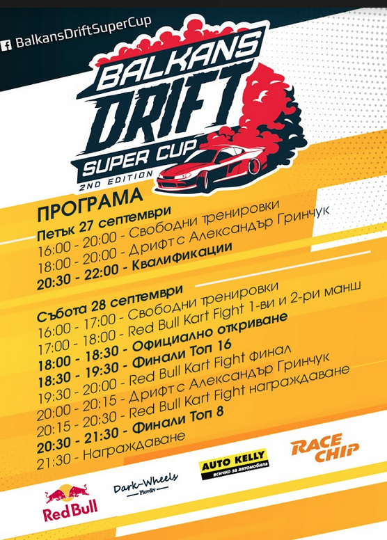 Второто издание на Balkans Drift Super Cup още веднъж ще събере най-хубавите водачи от целия Балкански район. Домакин на конкуренцията ще бъде картинг писта Варна, където в границите на два дни - 27 и 28 септември, зритерлите ще станат очевидци на необикновено шоу и спиращо дъха съревнование.