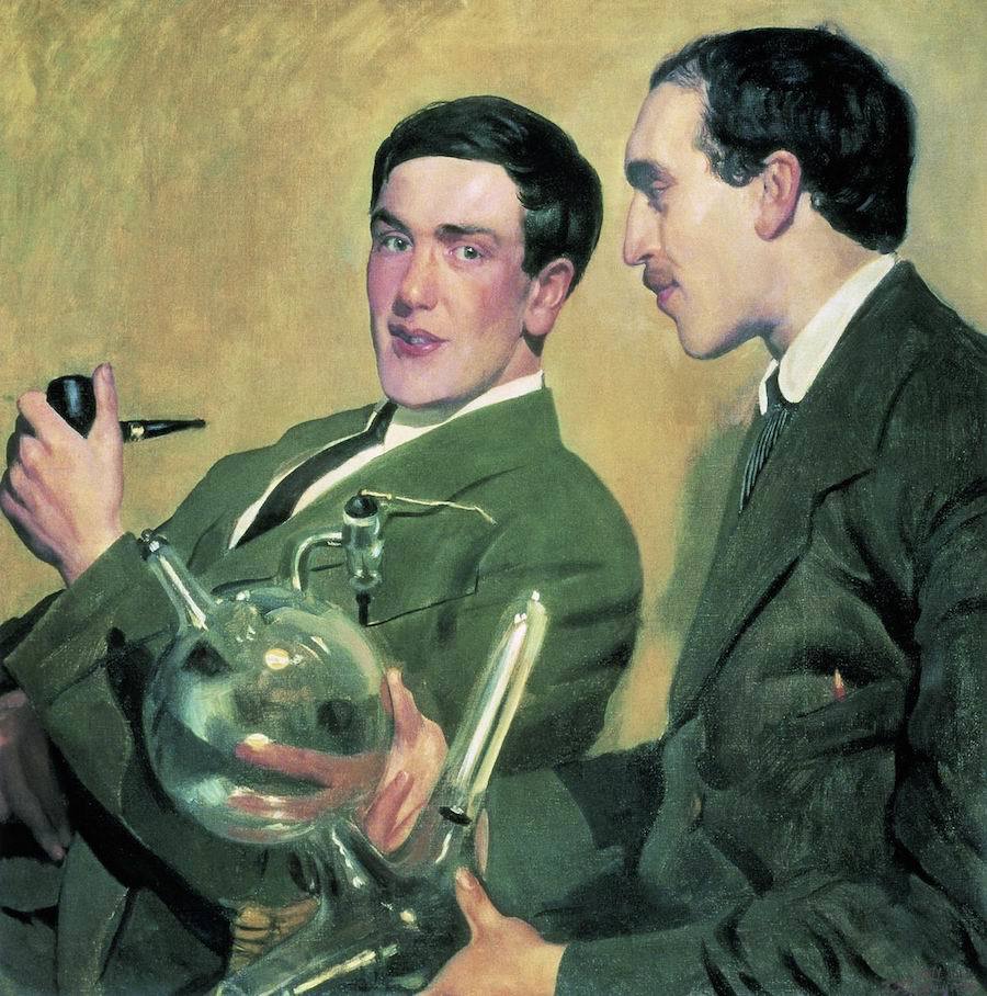 През 1921 година в Петроград, към художника Борис Кустодиев се обърнали двама млади учени с молба да нарисува техен портрет. Аргументите им били, че Кустодиев рисува единствено популярни персони, а те са уверени, че също ще се популяризират, въпреки сега да са никому незнайни.
