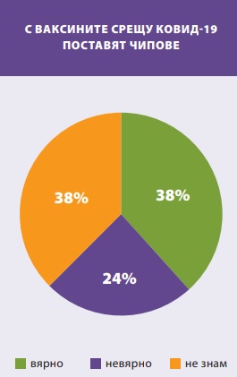 В рамките на проучването почти двама от всеки трима интервюирани имат вяра, че имунизациите против Covid-19 са по-рискови за здравето от другите ваксини, не се предлагат при редица хронични болести, имат рискови странични резултати, не са тествани задоволително, за тях има информация, която съзнателно се укрива и в последна сметка тези ваксини имат за цел единствено да усилят облагите на фармацевтичните компании.
