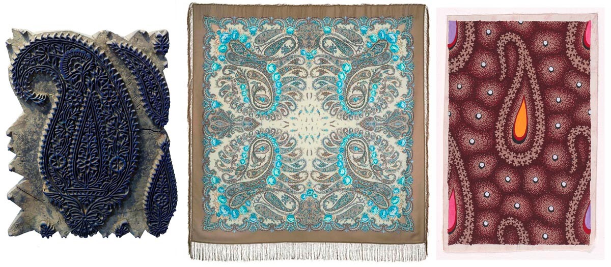 Музей на изкуствата „Метрополитън“; pavloposadskie-platki.ru; Музей на изкуствата „Метрополитън“ Емблематичната щампа „краставица“, „пейсли“ или „бута“ е доста античен десен. Смята се, че се е появил в античната Сасанидска империя (известна още като Втората персийска империя), която е съществувала на територията на днешните Ирак и Иран при започване на първото хилядолетие. По комерсиалните пътища орнаментът се популяризира в Индия, Източна Европа и Африка, а в Европа попада през XVII в. с помощта на английските колонисти. Наричат го още „пейсли“. Още един век по-късно той идва в Русия, като се причислява към известните тук растителни орнаменти. „Модният принт“ се трансформира в един от най-търсените от майсторите на шалове от Павловски Посад – може би най-известните съветски шалове в света през днешния ден.