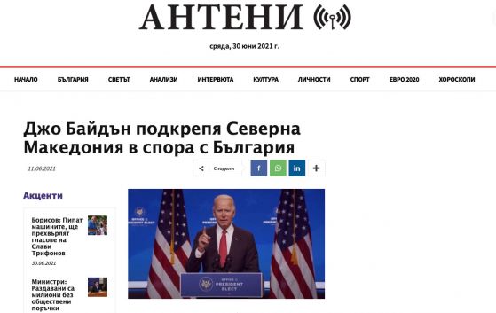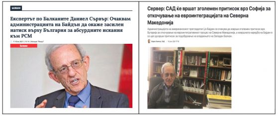 Заглавията, че президентът на Съединени американски щати Джо Байдън застава зад Македония и ще окаже “смазващ напън ” върху България са подвеждащи. Като публична позиция на Белия дом е показано мнение на специалист, който въпреки да е авторитетен, няма публични функционалности в американската администрация и не приказва от нейно име. Според българския президент натискът върху България за предоставяне на ход на договарянията на РСМ идва от страна на Европейския съюз.