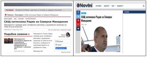 Повод да се приказва за американски “натиск ” върху България във връзка разногласието със Северна Македония стана и извършеният телефонен диалог сред президента Румен Радев и държавния секретар на Съединени американски щати Антъни Блинкен от 11 юни 2021 година