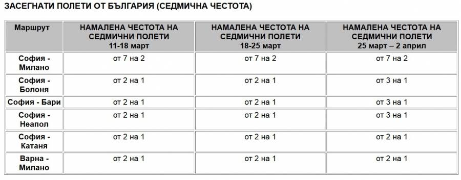 Съкращават се полети до Милано, Болоня, Бари, Неапол, Катаня.