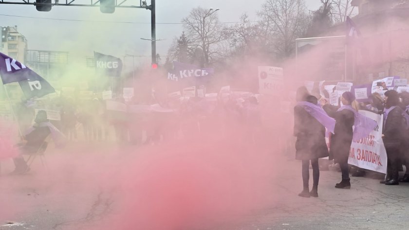 At exactly 12 the protesting MoEW employees blocked the intersection of Blvd. " Nikola Petkov " and Blvd. " Tsar Boris the Third ". They are demanding a 30% increase in basic monthly salaries by the end of 2024, starting from 1 November, a planned increase in wages in the MoEW budget for 2025 by at least 15%, changes in the regulations in the state administration to allow annual increases in basic salaries and adequate consideration of experience, qualifications and working conditions.