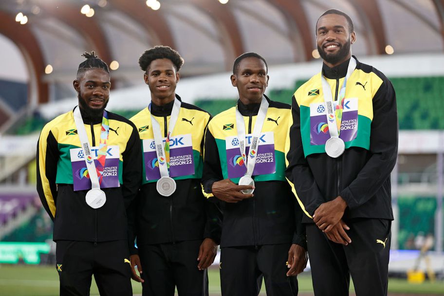 Ямайците Акийм Блумфийлд, Нейтън Алън, Жувон Пауъл ии Кристофър Тейлър извоюваха сребърните медали с 2:58.58 минути.