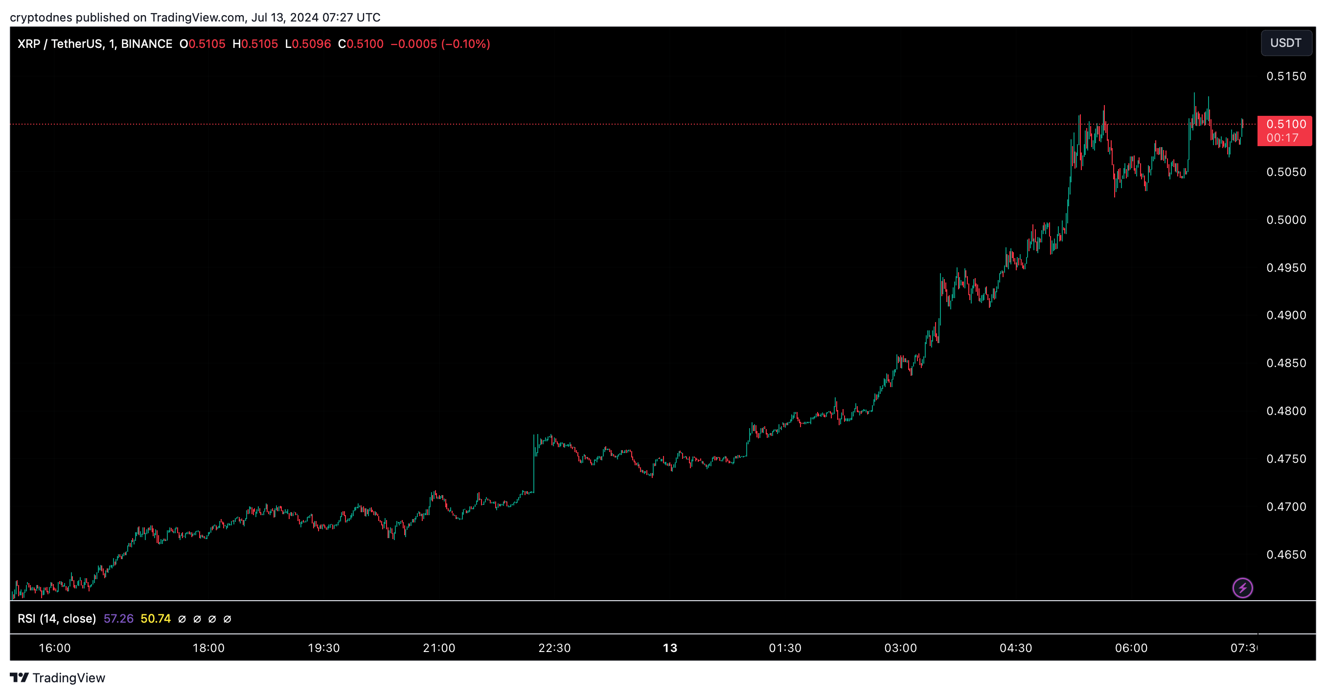 XRP възстановява инерцията си, следвайки съживяването на крипто пазара като проби назад над $0.50.
