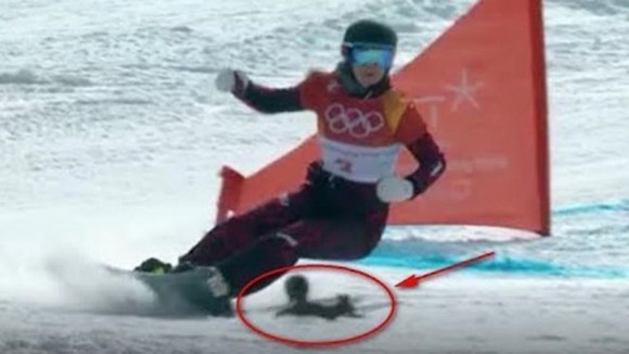 Катерица изскочи ненадейно на пистата по време на конкуренцията в паралелния слалом в сноуборда. Гризачът мина на сантиметри от дъската на австрийската спортистка Даниела Улбинг. Спортистката резервира самообладание и съумя да избегне удара и даже приключи преди всичко.