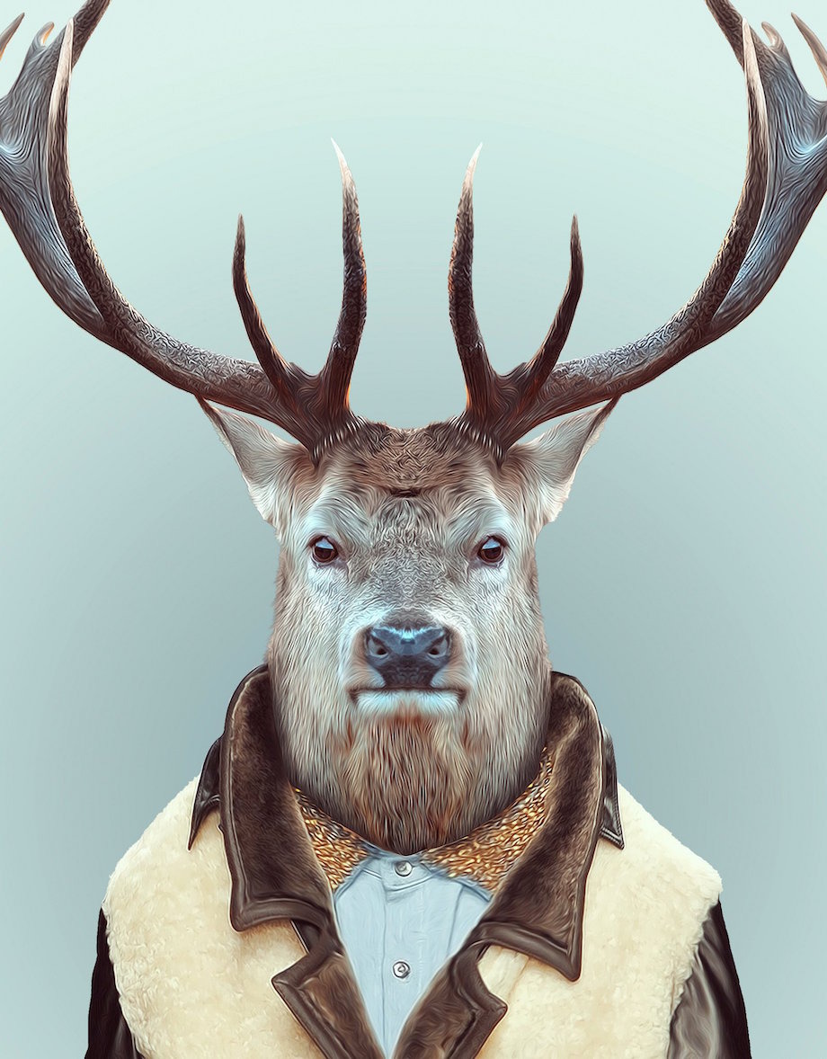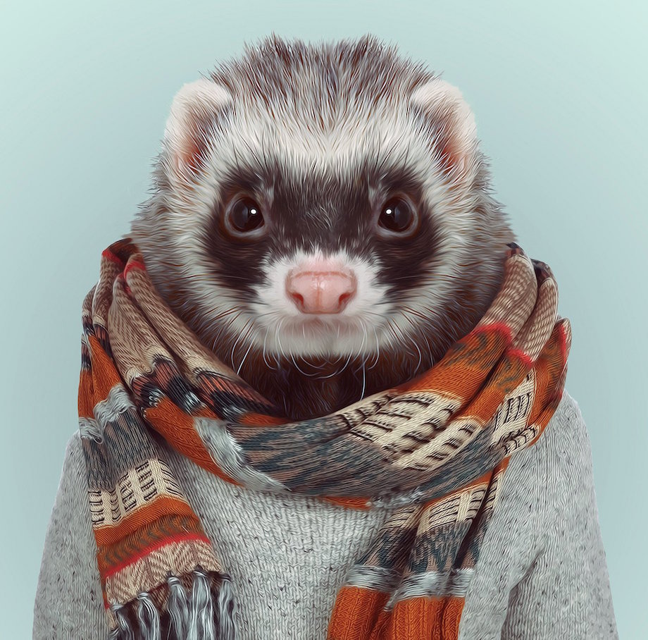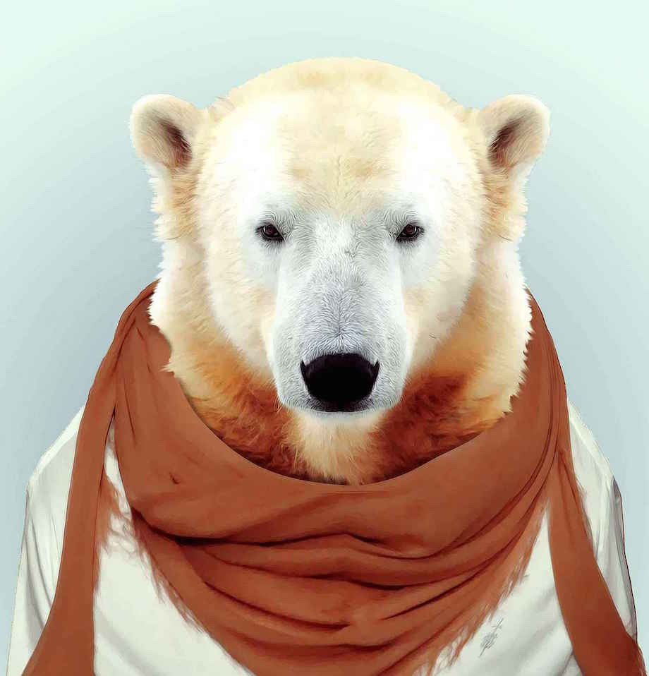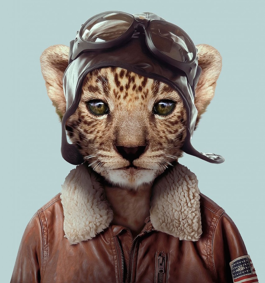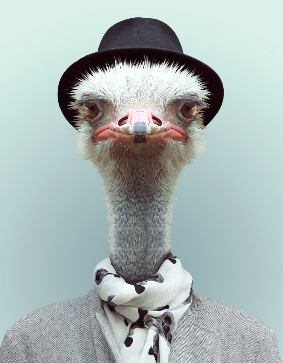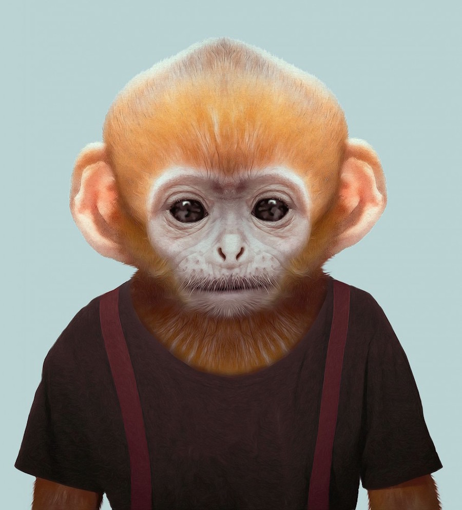 Yago Partal съчетава пристрастеността си към модата с любовта си към животинското царство в чудноват план, наименуван Зоо портрети. Всяко изображение е на половина картина и на половина фотография. Младата художничка е от Барселона и обичаното й занятие е да облича в фешън облекла животинския свят. Антропоморфните портретни фотоси напълно сполучливо биха могли да послужат за персонални документи на сладките животинчета, в случай че някой ден им се наложи. ☺