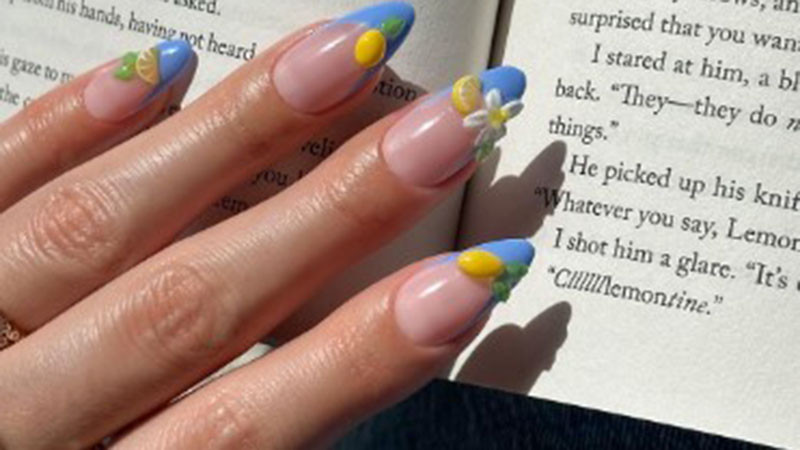 Цели релефни лимончета, лимонови цветове, както и небесно сини върхове на ноктите? С сходен маникюр не ни остава друго, с изключение на да се отправим към Амалфийското крайбрежие.