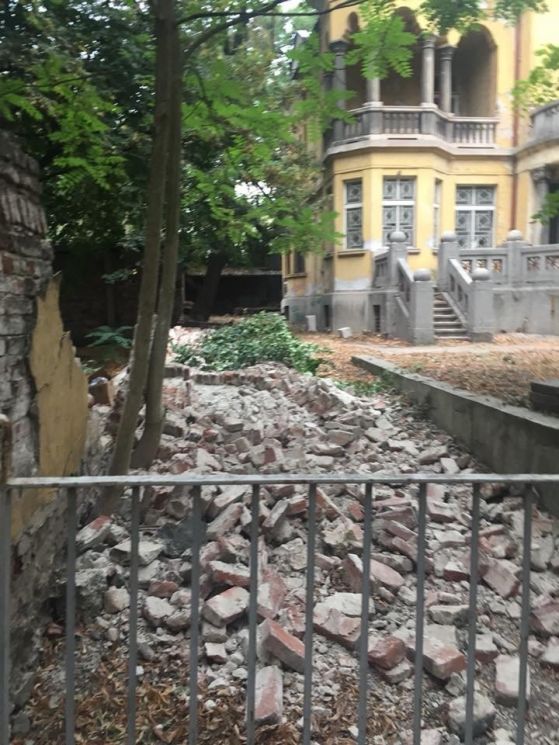 Рухна южната ограда на `Къщата с ягодите` в София