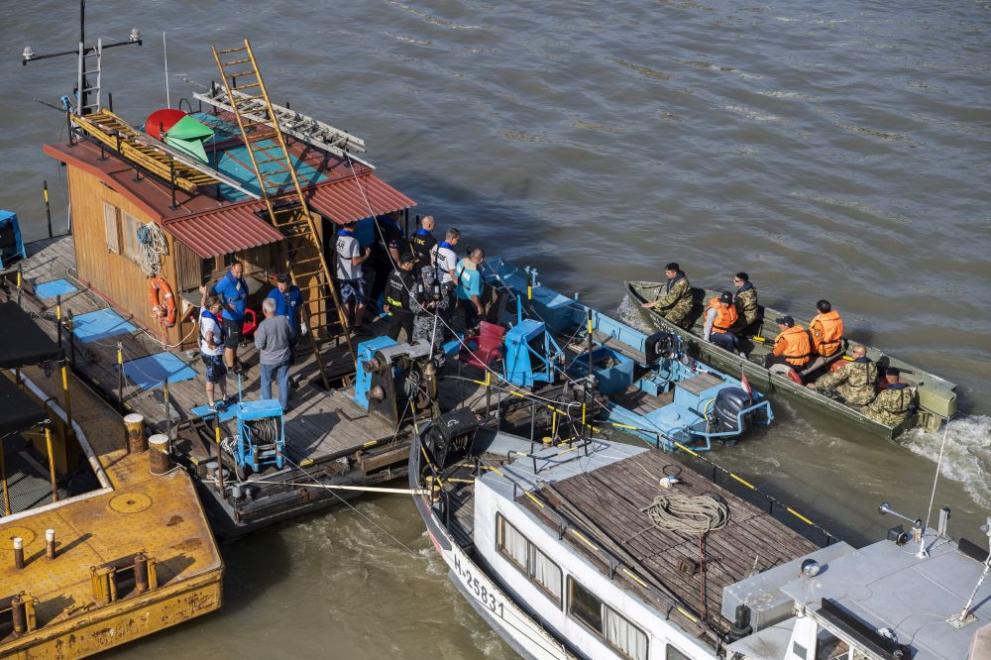 Тази заран корейска баржа и няколко избавителни гумени лодки смениха унгарската баржа на мястото на случая, подготвяйки нови пробни гмуркания, сподели кореспондент на Ройтерс на мястото.