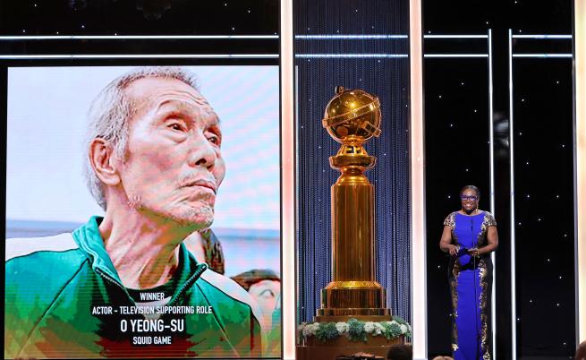 77-годишният О Йон-су получи оценката за най-хубав артист в поддържаща роля в телевизионна поредност за превъплъщението си в облика на О Ил-нам или състезател 001 в хитовата поредност "Игра на калмари " на стрийминг платформата Нетфликс. Така той става първият южнокореец с премия "Златен глобус ".