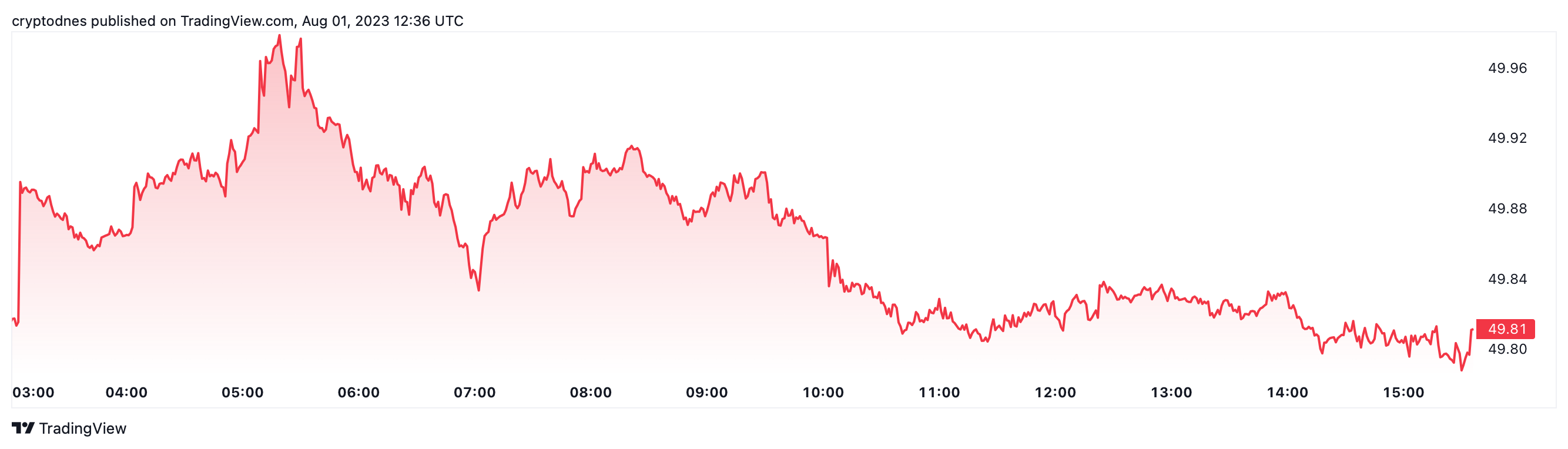 Понастоящем няма ясно изразена хоризонтална опозиция, само че някои знаци допускат опцията за местен връх. Седмичният показател на относителната мощ (RSI) е надълбоко в територията на свръхпокупка и покрай нов исторически връх, което в исторически проект води до внезапни низходящи придвижвания. Освен това BTCD се сблъска с отменяне на равнището на опозиция на 0.382 Фибоначи промяна при 52%, а спадът продължава от края на юни.
