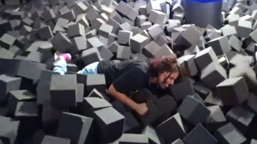 Един от атракционите, в който стриймърите се включват в дуели между тях, е ямата с дунапренени кубове.