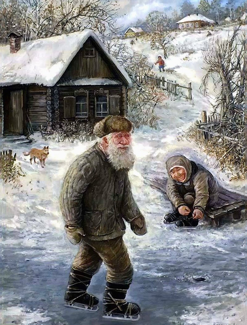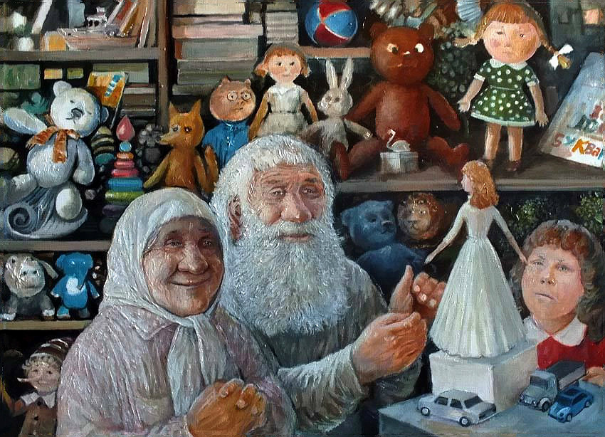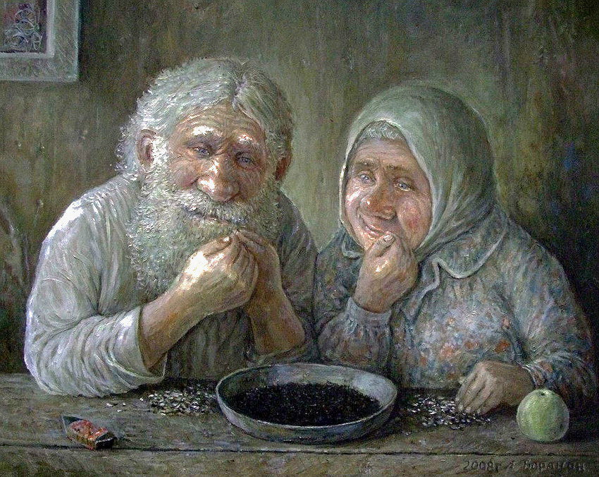 За детството в Урал, за топлите мемоари от баба и дядо, за необятните им усмивки и закрилящи ръце, за делниците и празниците, отрудените дни и волните мигове. Това рисува в задушевните си картини уралският художник Леонид Павлович Баранов. Роден в дребното селце Бобилево, той израства с грижите на своята баба Мария Егорова чак до постъпването си в армията. Картините си посвещава на селските хора – почтени, работливи, окъпани в добрина. Поглеждайки към безметежно усмихващите се герои в творчеството му, ние също се усмихваме и се връщаме в детството – при баба и дядо.