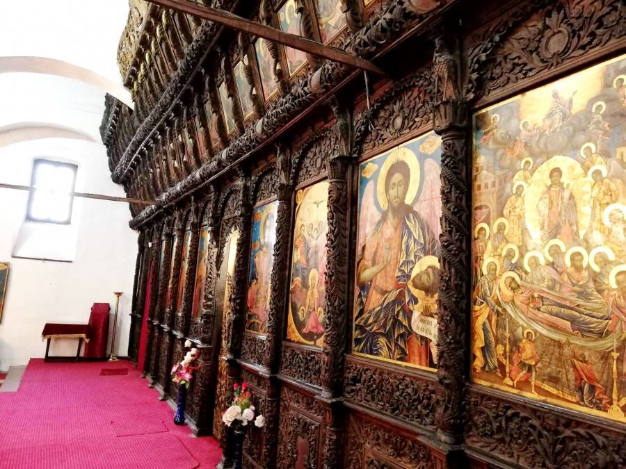 В Плевен имаме невероятния шанс, че първоначално и в средата на XIX век тук са работили марангози от Македония. Ето тази църва – „ Св. Николай “, е издигната през 1834 година Иконостасът й е типичен триреден. Направен е от занаятчия Петър през 1845 година На третия ред има вградена табела, на която написа името му и годината. Изработката на владишкия престол пък е почнала през 1935 година За страдание влагата е доста огромна в този храм и имаше проваляне на трона . Под него се беше образувало нещо като бунар. Водата от време на време е излизала като гейзер. А тази влага поражда изгниване на дървото. Дърворезбата е неповторима. Правена е от майстори от Тревненската школа. Наложи се целият владишки престол да бъде демонтиран. От него извадих над 1 200 турски пирона – задачите в наслойка, а тя разяжда дървото. На гърба му има нещо сходно на икона, на която са изписани имената на донорите. Налагаше се да се направи консервация на живописния пласт. След това цялата структура на трона трябваше да се санкции отначало.
