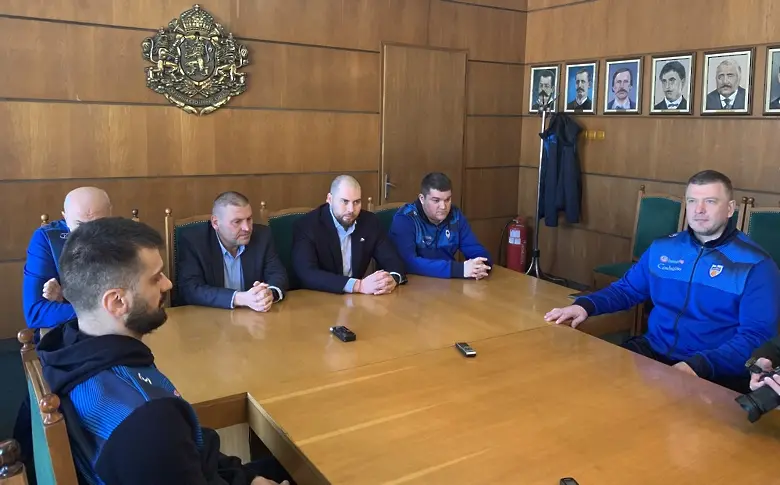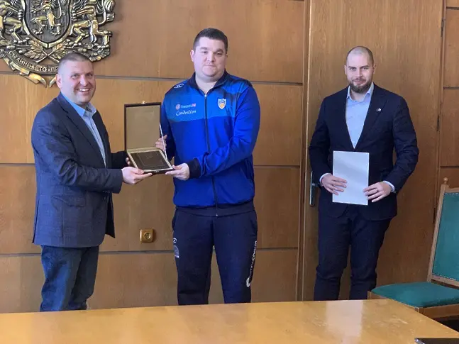 Кметът д-р Валентин Христов и председателят на ОбС доц. д-р Иван Малкодански поздравиха екипа на БК „Спартак“ – Плевен