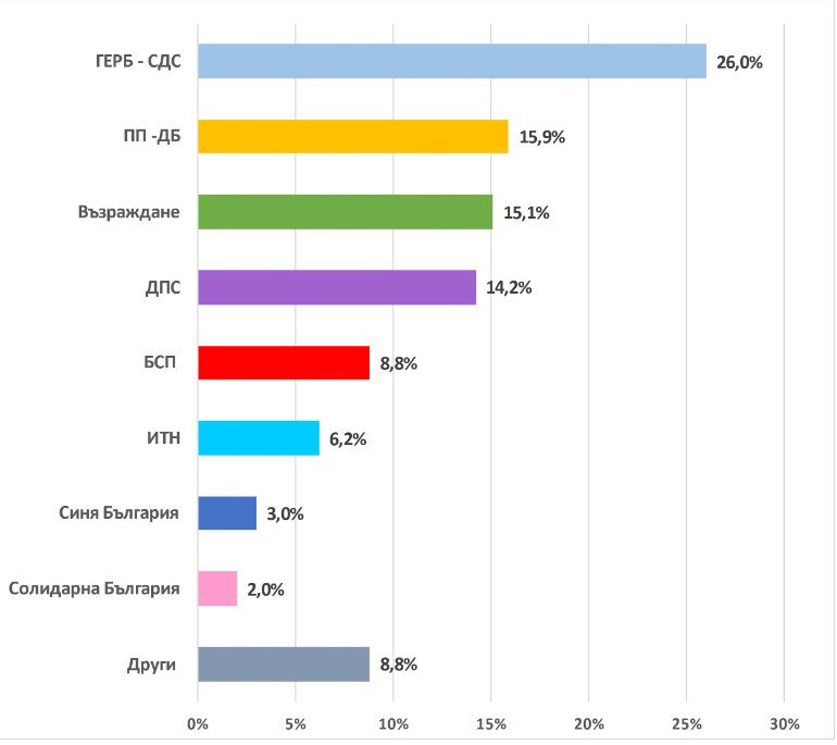 „Екзакта“: 11% преднина на ГЕРБ-СДС пред ПП-ДБ, „Възраждане“ и ДПС