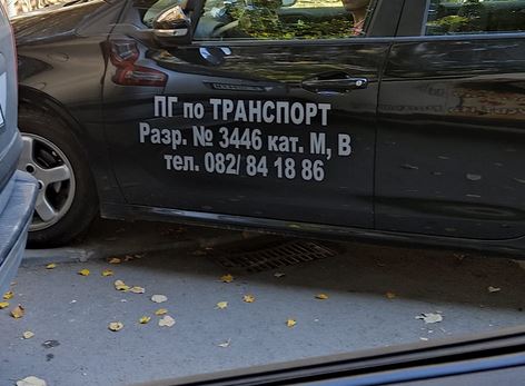 Учебен автомобил, брандиран с надписи на Професионалната гимназия по превоз в града, е сниман в нарушавания.