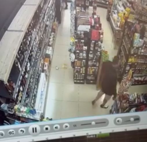 На видеозаписа, публикуван в обществените мрежи, се вижда мъж, който се доближава до рафта с алкохол. Той взима една от бутилките, а след това дълго време обикаля из обекта.