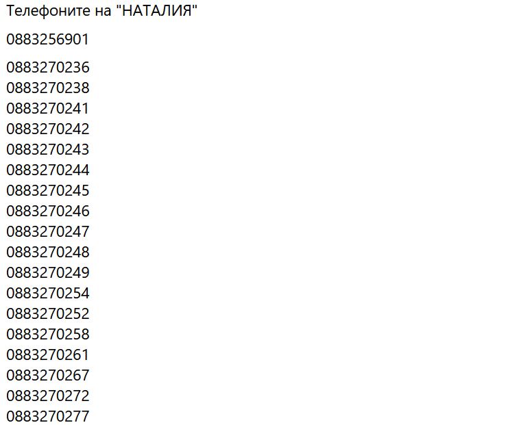 Ето и телефоните, от които са вероятни позвънявания: