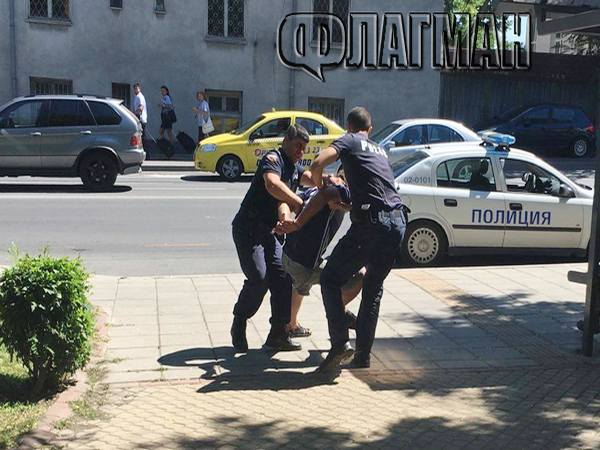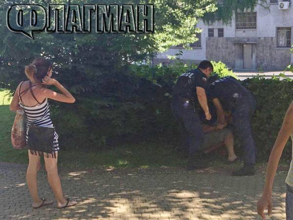 След 3-4-атата минута от започването на екшъна има внезапно набиване на спирачки на полицейска кола пред спирката, от нея изскочиха двама служители на реда, за които в тълпата от наруили се сеирджии бяха нужни не повече от 5 секунди, с цел да разпознават бияча. Попитаха да го дали има документ за идентичност. След отговора му:„ Не! Не съм задължен да нося!” момичето, с разкървавена дясна половина на лицето, съобщи, че е била пребита от този човек. Полицаите незабавно повалиха посочения с пръст, а тълпата ревеше одобрително: „ Арестувайте го!”.