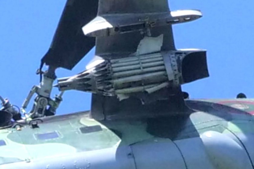 Става въпрос за щурмовия вертолет Ми-24, ръб 144, на чиято платформа е бил качен резервоар с автоматизирано оръдие за потребностите на пробните стрелби в границите на учението, който обаче е бил на косъм да се откачи.