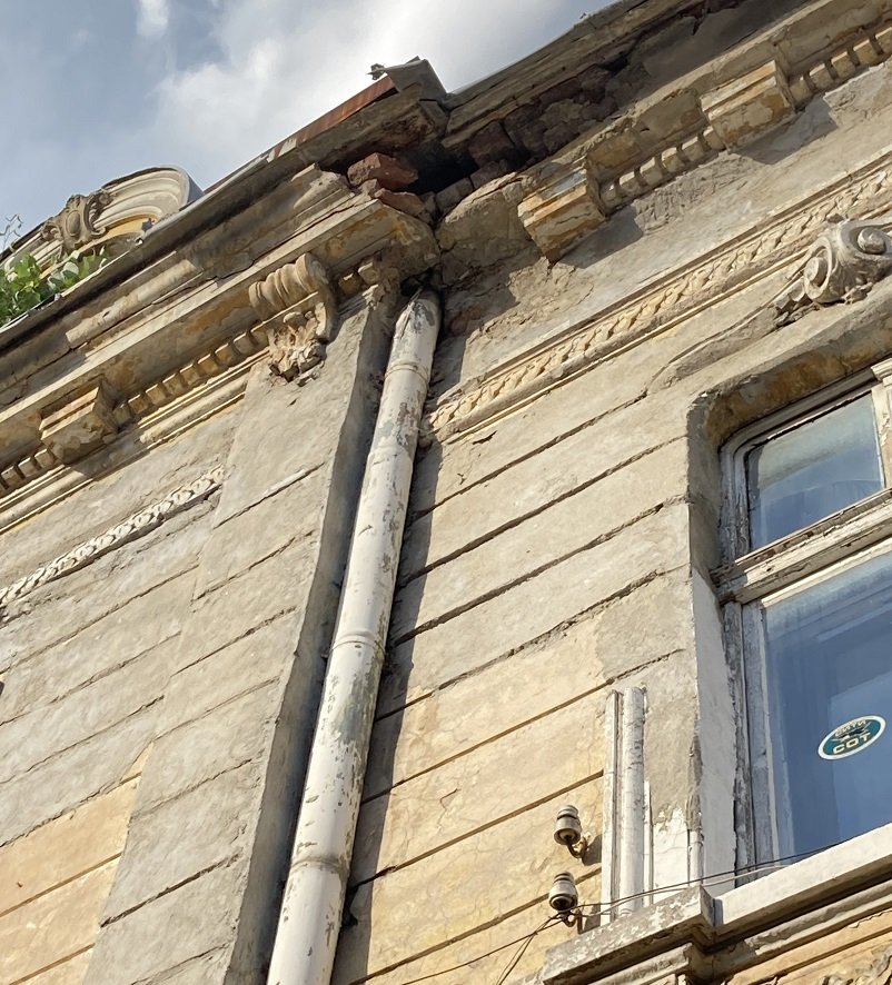 Сградата е на бул. " Христо Ботев " 42, разрушава се, а от стряхата й са надвиснали тухли.