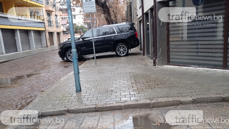 Шофьор на джип Шевролет е оставил автомобила си през вчерашния ден от 10:00ч. до 15:00ч. паркиран по този метод, затапвайки тротоара пред входа на жилищна постройка и пред гараж.