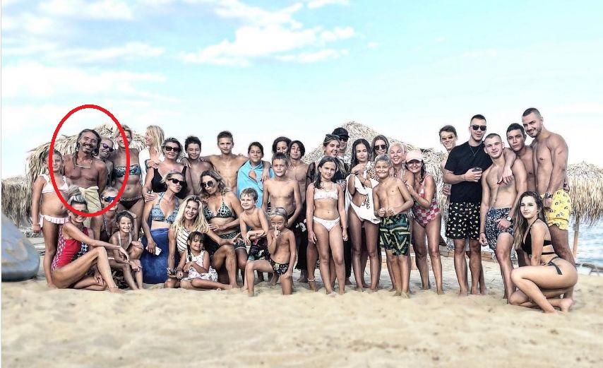 На фотоса двамата театралничат в огромна компания на плажа, гушнати и ухилени до уши. Наши източници разкриха, че тайнственият мачо е грък, притежател на няколко заведения по морето.