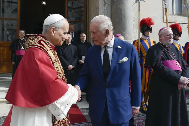 Преди службата кралската двойка бе посрещната с почести от швейцарската армия , а по-късно се срещнаха с Папа Лъв XIV в Апостолическия замък. Обмениха обичайни блага: крал Чарлз подари икона на свети Едуард Изповедник, а папата му връчи мозайка на Христос Пантократор – византийски облик от катедрала в Чефалу, Сицилия.