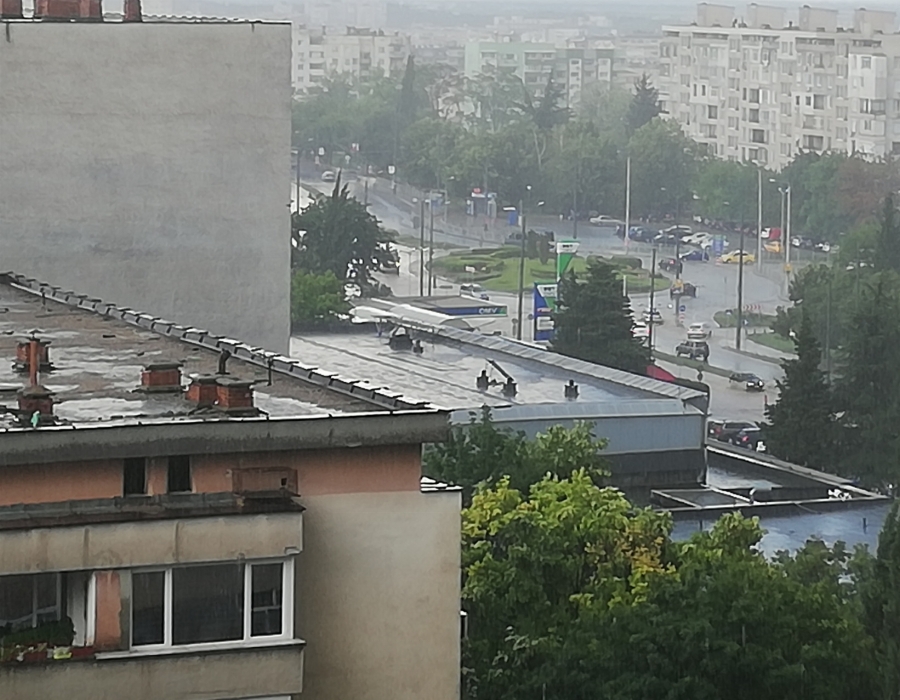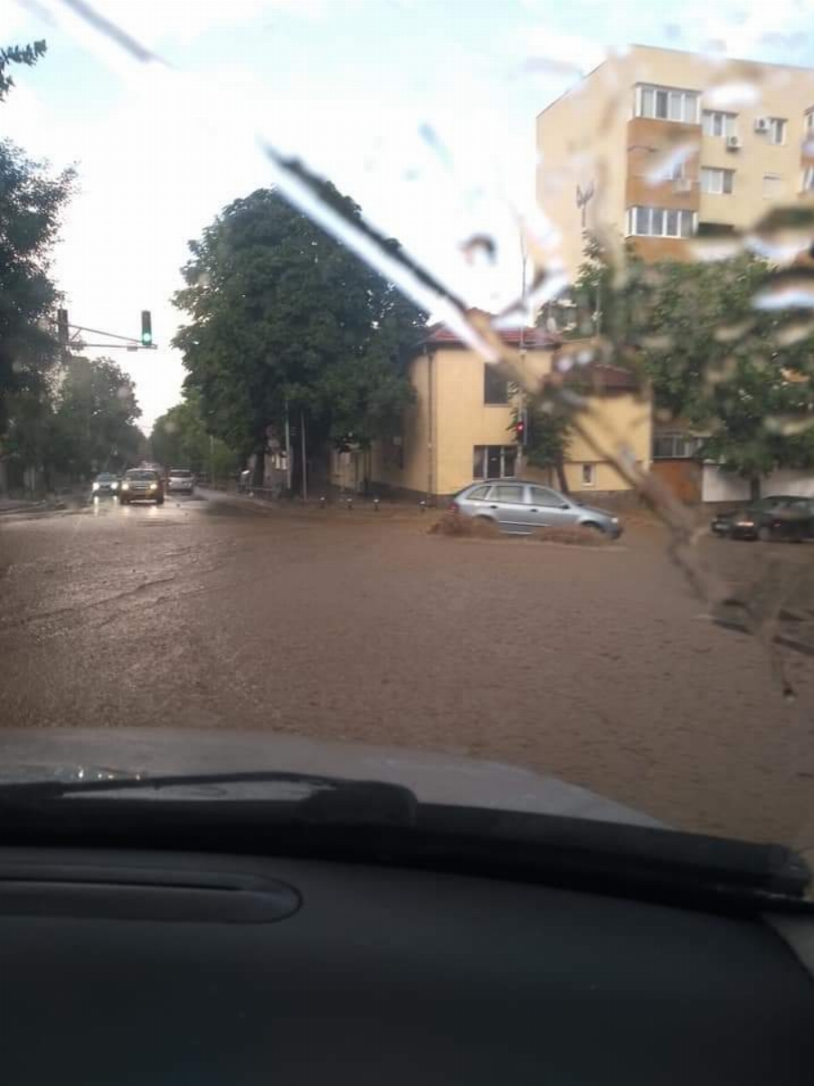 За по-малко от 10 минути в Стара Загора се изля пороен дъжд. Пешеходни и транспортни артерии са като корита на реки.