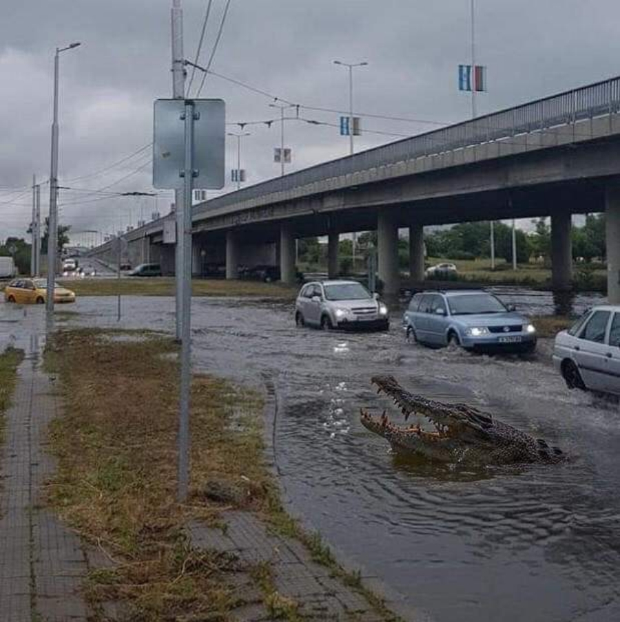 В обществените мрежи се извърши със фотоси на стичащите се из града кални води и плаващи коли по пътищата.