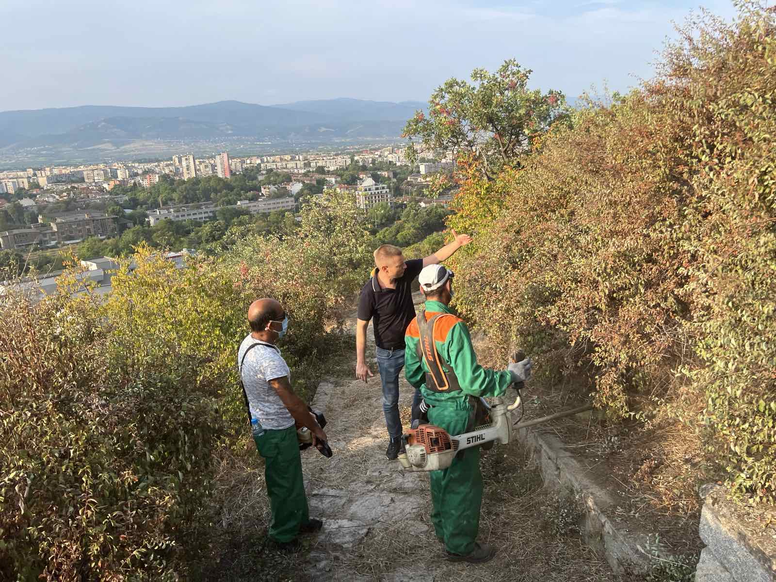 „ Наша бригада ежедневно поддържа парковата част и централната алея на хълма, само че има и алеи, най-вече в североизточната част, които не са почиствани от години. Поехме ангажимент да разчистим всички пътеки и ще го изпълним”, съобщи шефът на „ Градини и паркове” Веселин Козарев.