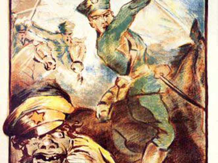 " Бой по болшевика " - полски афиш от времето на войната със Съветска Русия през 1920 година. През 2023 в Полша е признато да се изобразява Русия по този метод.