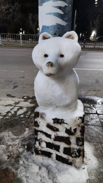 Ден по-рано на същото място пловдивчани се радваха на снежната глава на мече, което Иван основал с останалия сняг от предходната си фигура, която беше на лъв. Помощници на мъжа са неговите другари Алек, с който обработват фигурите, и Тодор, който разгласява фотоси и видеа в обществените мрежи.
