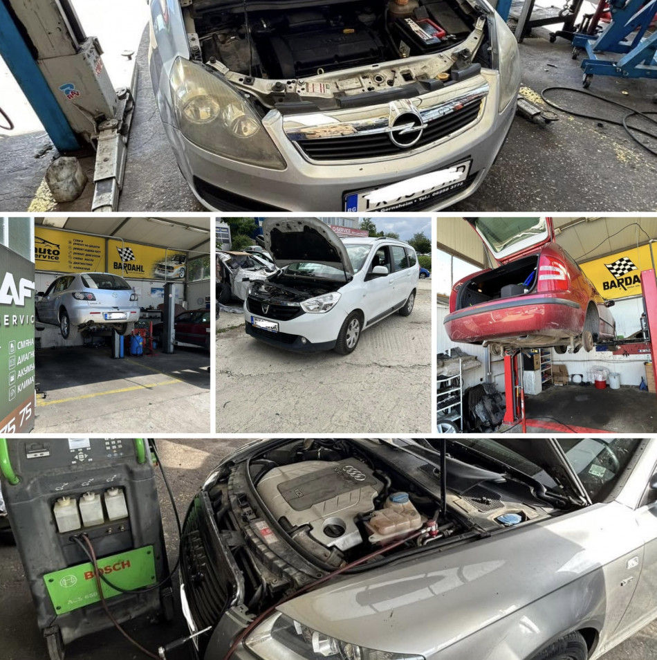 Автосервизът прави сложни поправки и обслужване на коли от всички марки – техническо обслужване диагностика, поправки на спирачна система, кормилно ръководство, трансмисия, ходова част, климатици и други.