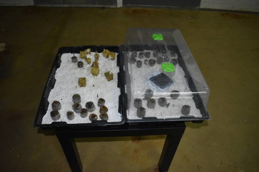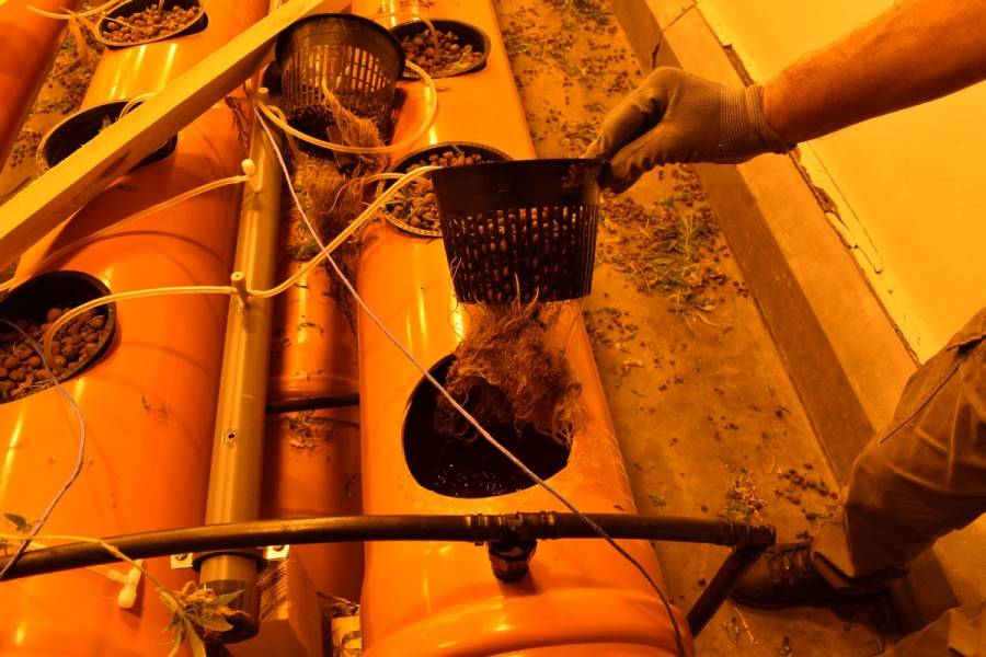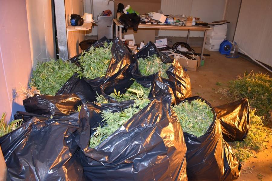 Установено е, че главното помещение е било разграничено на няколко халета, едно от които - приспособено за сушене на готовата продукция. От там са конфискувани близо 14 кг суха растителна маса, която при полевия наркотест е реагирала на марихуана. В други две пространства, в които са открити близо 1 000 засадени стръка от растенията, бил построен повсеместен цикъл за развъждането им - капково напояване, климатици, влагоабсорбатори, лампи, уреди за премерване и поддържане на температурата и влажността.