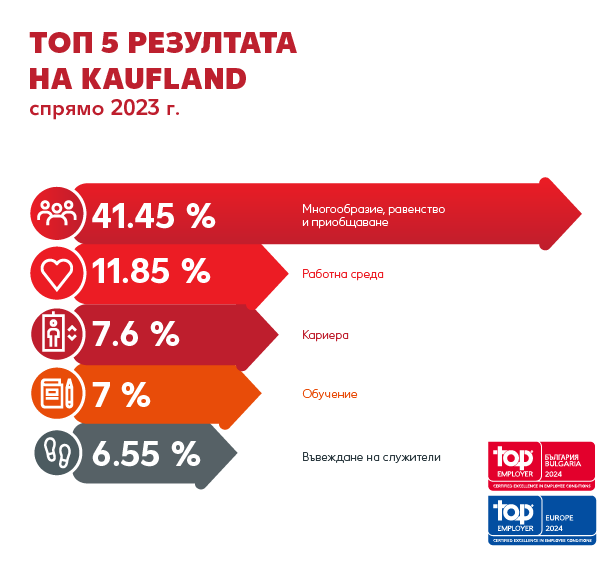 Сертификатът Top Employer е присъден на Kaufland България, както и на всички останали страни от фамилията на компанията. По този метод с изключение на Top Employer в България, Kaufland за поредна година е и Top Employer в Европа.