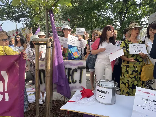Демонстрантите упорстват за от 20 до 30% нарастване на заплатите.По време на акцията е отворен алегоричен " Магазин на работещите небогати ", на който депутатите са канени да пазарят.