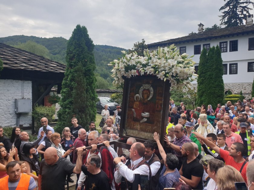Чудотворната икона на Пресвета Богородица Троеручица беие пренесена от манастирския храм до местността „ Могилата “ - мястото, където е направила първото си знамение. Шествието водиха представители на Национално сдружение „ Традиция “, които носиха иконата.