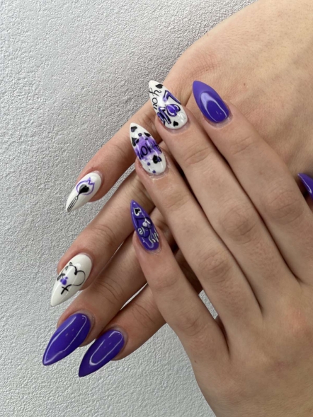 Не може и да не ви предложим един магически дизайн с цвета на 2022 година, а точно лилаво с детайли от минималистичния и графичния жанр. Получава се една неповторима еферия върху ръцете ви.