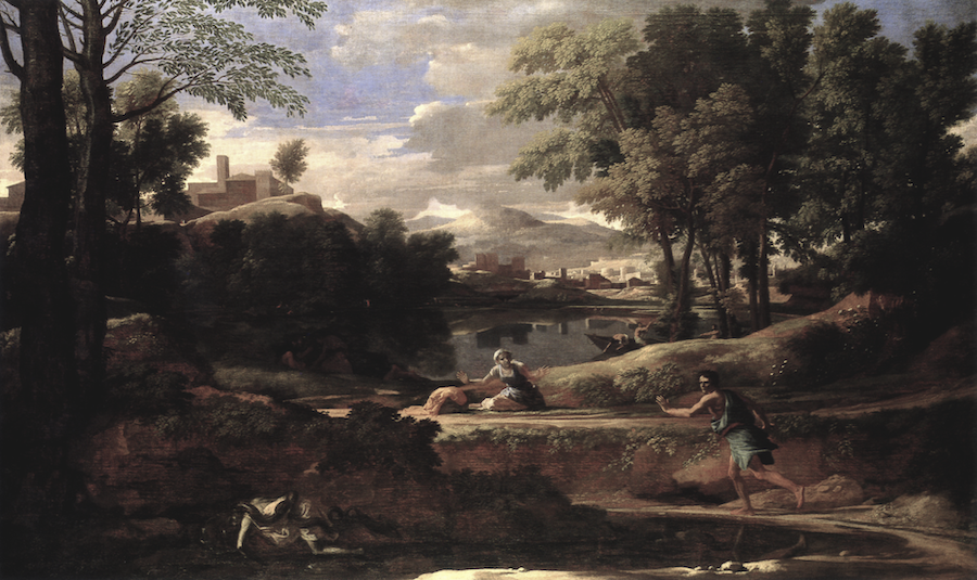 Изображение: Nicolas Poussin, Landscape with a Man Killed by a Snake, 1648, Wikimedia Commons