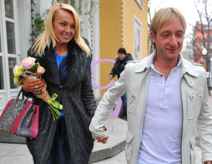 Евгений с Яна, която го върна в спорта, с цел да завоюва още два олимпийски медала Всъщност спортът е общата пристрастеност на влюбените, което прави връзката им още по-силна. „ Ако свинята на всички места намира кочина, то Женя на всички места ще откри спорт”, майтапи се половинката му.Оказва се, че Рудковская е главният „ виновник” Евгений да възобнови спортната си кариера. „ През 2006-а, когато завоювах златото на олимпиадата в Торино взех решение да приключа – признава първенецът. – Но по-късно се срещнах с Яна и тя ме върна.”