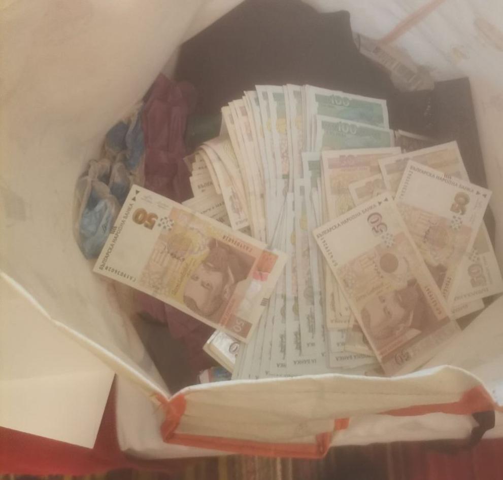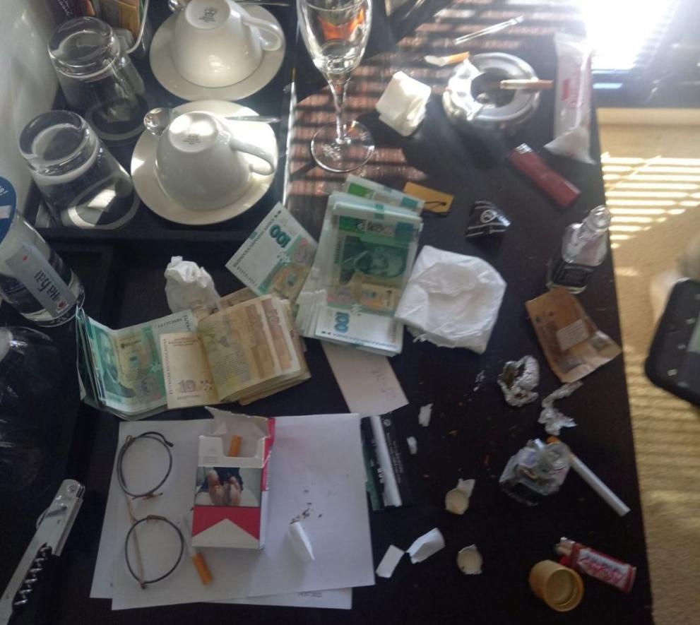 При последвалото претършуване на стаята чиновниците иззели огромна сума пари, наркотични субстанции и други движимости.