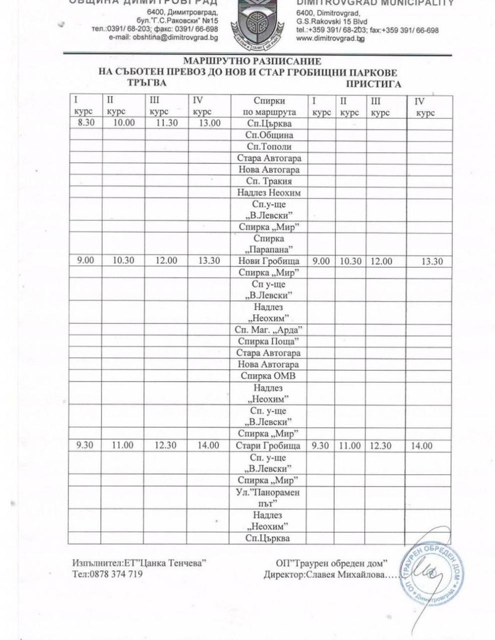 " Автобусите ще се движат по одобреното разписание ", показа Директора на Общинското дружество " Траурен ритуален дом " Славея Михайлова.