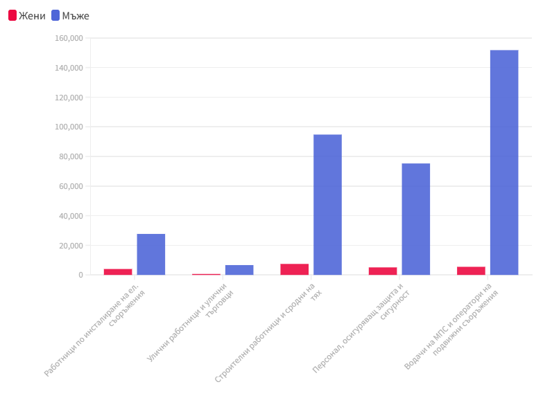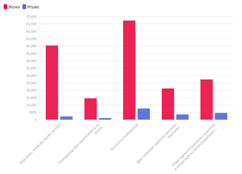 Изборът на специалност е мощно повлиян от обичайните функции на пола. Впечатление прави, че за дамите са по-характерни занимания, свързани с работата с хора. „ Данните демонстрират, че в секторите, в които е нужен персонален контакт и работа с хора, са заети най-вече дами, а в тези, в които се изисква главно физическа мощ, доминират мъжете “, разяснява Зорница Славова, старши икономист в ИПИ.