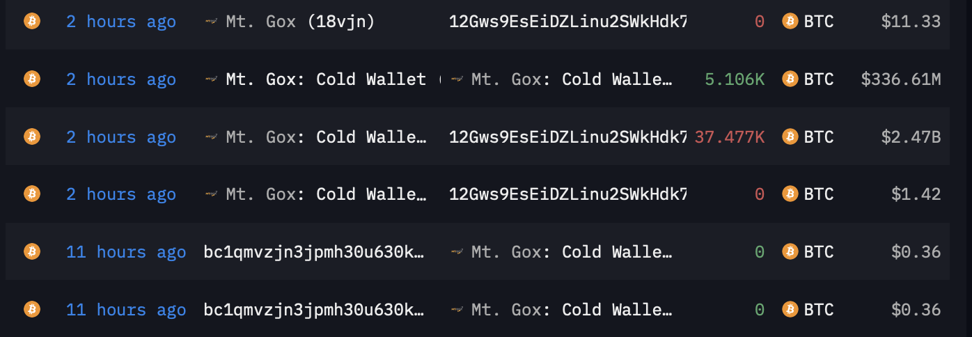 Закритата японска крипто борса Mt. Gox трансферира 37,477 BTC на 24 юли към 08:00 ч. (българско време), равняващи се на $2.5 милиарда все още на транзакцията, на чужд крипто адрес.