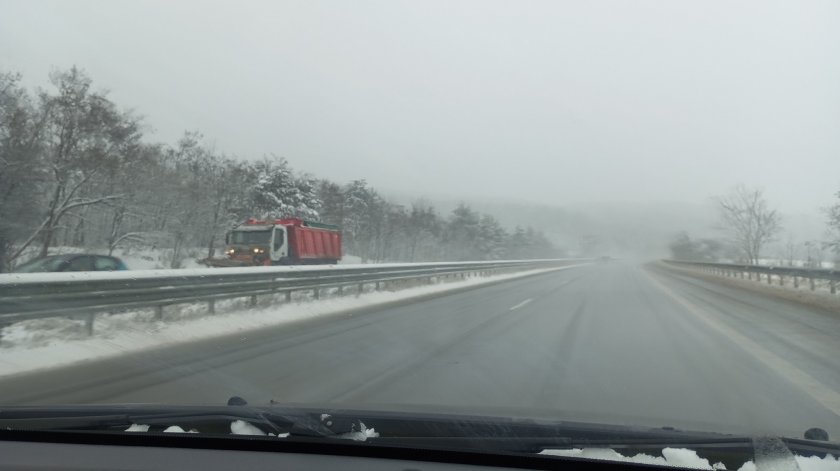 Той добавя, че автомагистралата в сектора на Ихтиман не е добре почистена. В района на Вакарел снегорини почистват аутобана, само че явно не са достигнали Ихтиман.