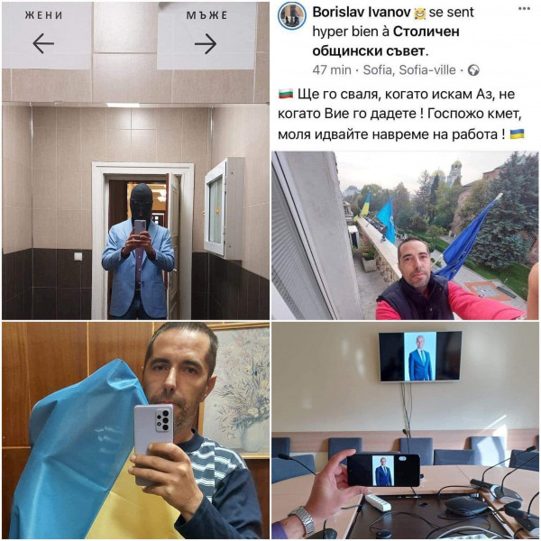 Зам.-председателят на Столичния общински съвет Борислав Иванов пусна фотография със знамето на Украйна на фасадата на общината в обществената мрежа през днешния ден и разгласи, че " ще го смъква, когато желая аз ". Той се е промъкнал маскиран в кабинета на кмета Йорданка Фандъкова тази заран, и по този начин е стигнал до балкона, където са знамената на България, Европейския съюз, Столичната община и на Украйна.